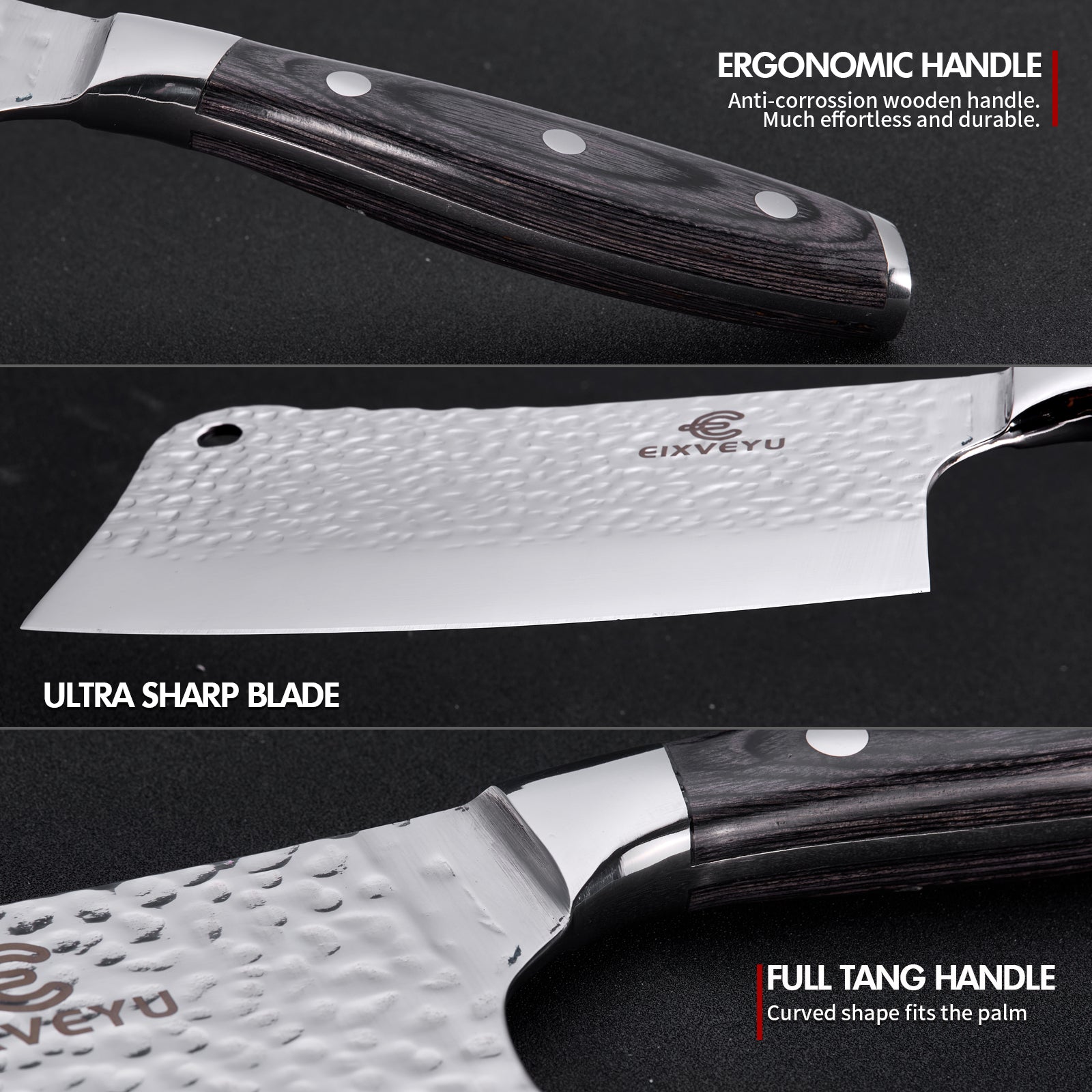 - Multifunktionales Küchenmesser - EIXVEYU Kochmesser ist ein Mehrzweckmesser. Es schneidet, stückelt, schneidet und schneidet Fleisch auch Knochen ab. Es kann die meisten Aufgaben in Ihrer Küche erfüllen, wie zum Beispiel Gemüse, Obst oder Fleisch schneiden. Dieses Kochmesser ist die beste Wahl für professionelle Köche.