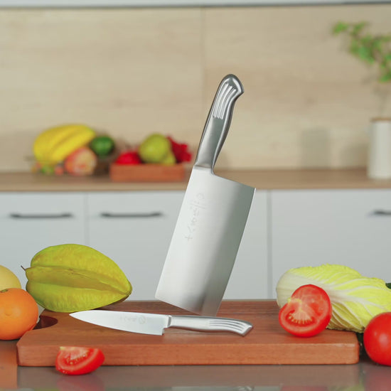 - Professional Knife Set - This kitchen knife set includes 2 razor-sharp knives: a cleaver knife and a fruit knife.Whether you're slicing meat,vegetables,dicing herbs,or prepping fruits, each kitchen knife of this set is designed to handle a variety of tasks effortlessly. Perfect for both professional chefs and home cooking enthusiasts.