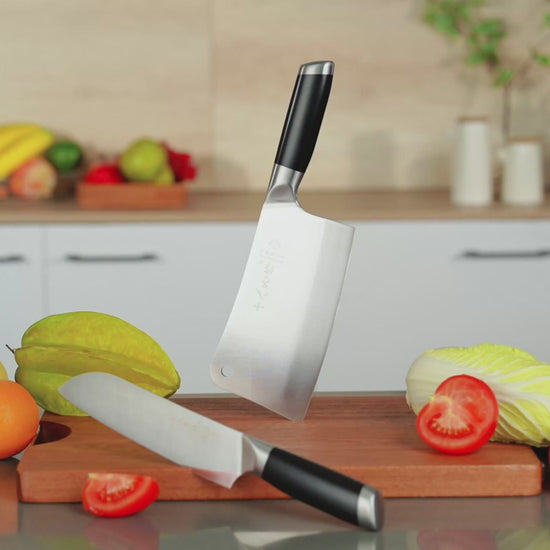 - Professional Knife Set - This kitchen knife set includes 2 razor-sharp knives: a bone chopper and a chef knife.Whether you're slicing meat,vegetables,dicing herbs,or prepping fruits, each kitchen knife of this set is designed to handle a variety of tasks effortlessly. Perfect for both professional chefs and home cooking enthusiasts.