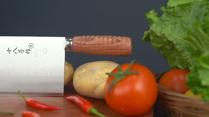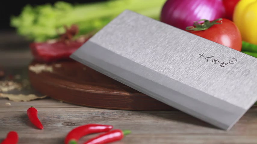 SHI BA ZI ZUO Cuchillo de chef chino de 9 pulgadas, cuchillo de cocina delgado y liviano Cuchillo de verduras de acero inoxidable Hoja antiadherente, Serie clásica F208-1 (Plata, 24,3 * 9,5 cm)