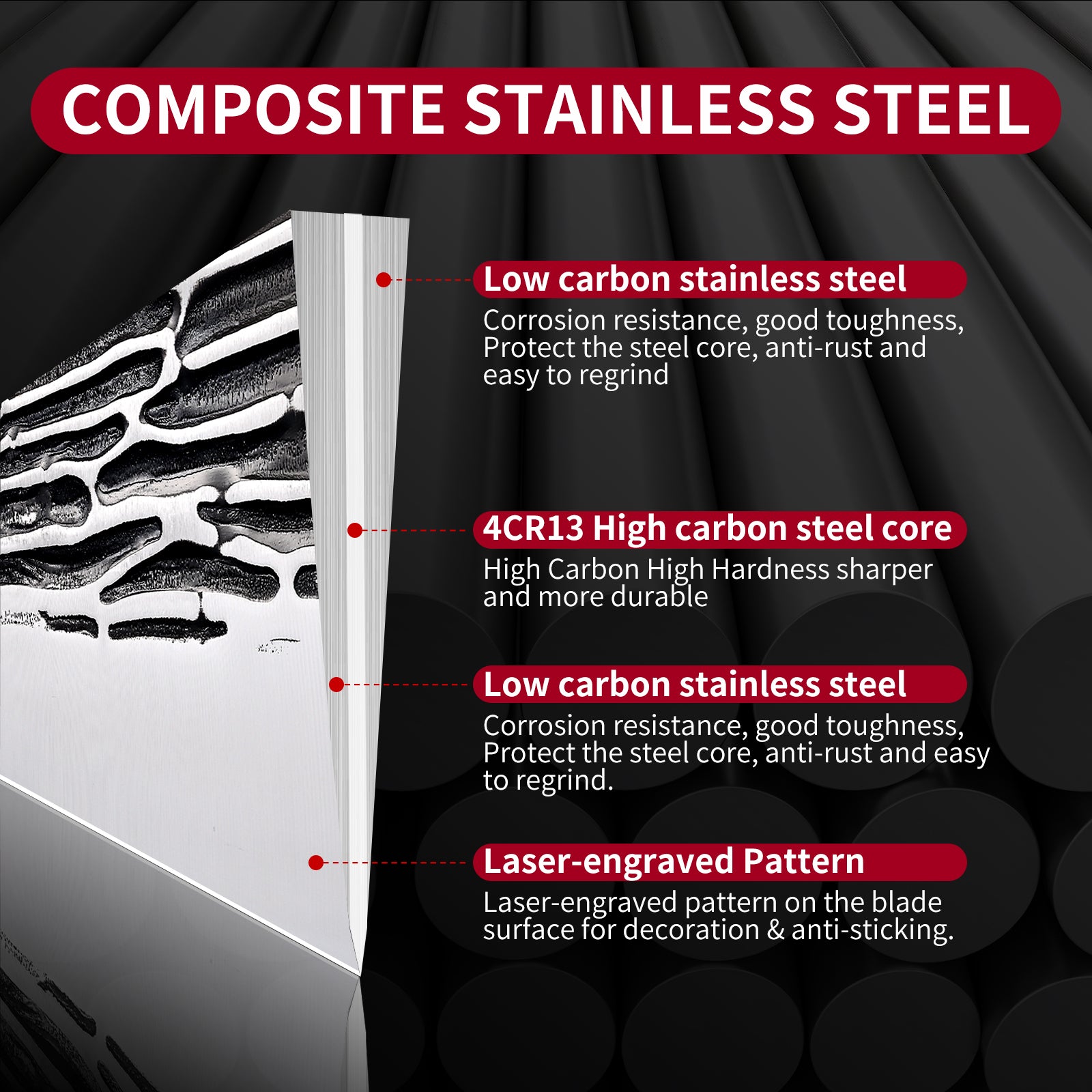 - 【Precise Craftsmanship】These forged chef knives are hand forged by craftsmen with more than 30 years of experience. Our durable knife boasts incredibly sharp blades. The chopping knife can be keeped the blade sharp for a long time, helping you cut food effortlessly. The oxidation blackening and hammering process add an anti-stick effect, enhancing the knife's technical and aesthetic appeal.