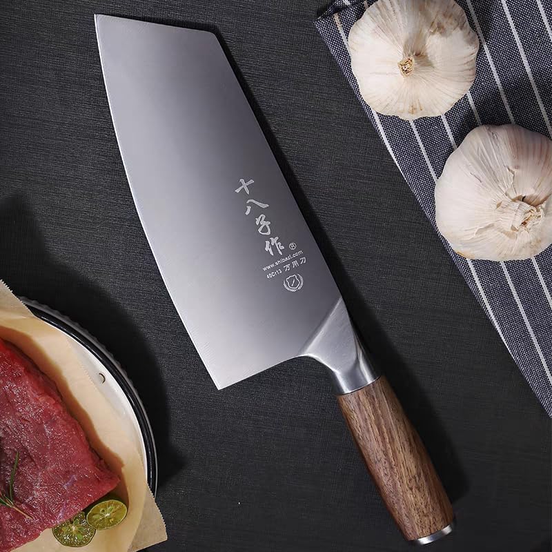 SHI BA ZI ZUO Meat Chopper Knife Chinese Chef Knife Vegetable Cleaver for Kitchen Stainless Steel Kitchen Knife with Anti-Slip Wooden Handle