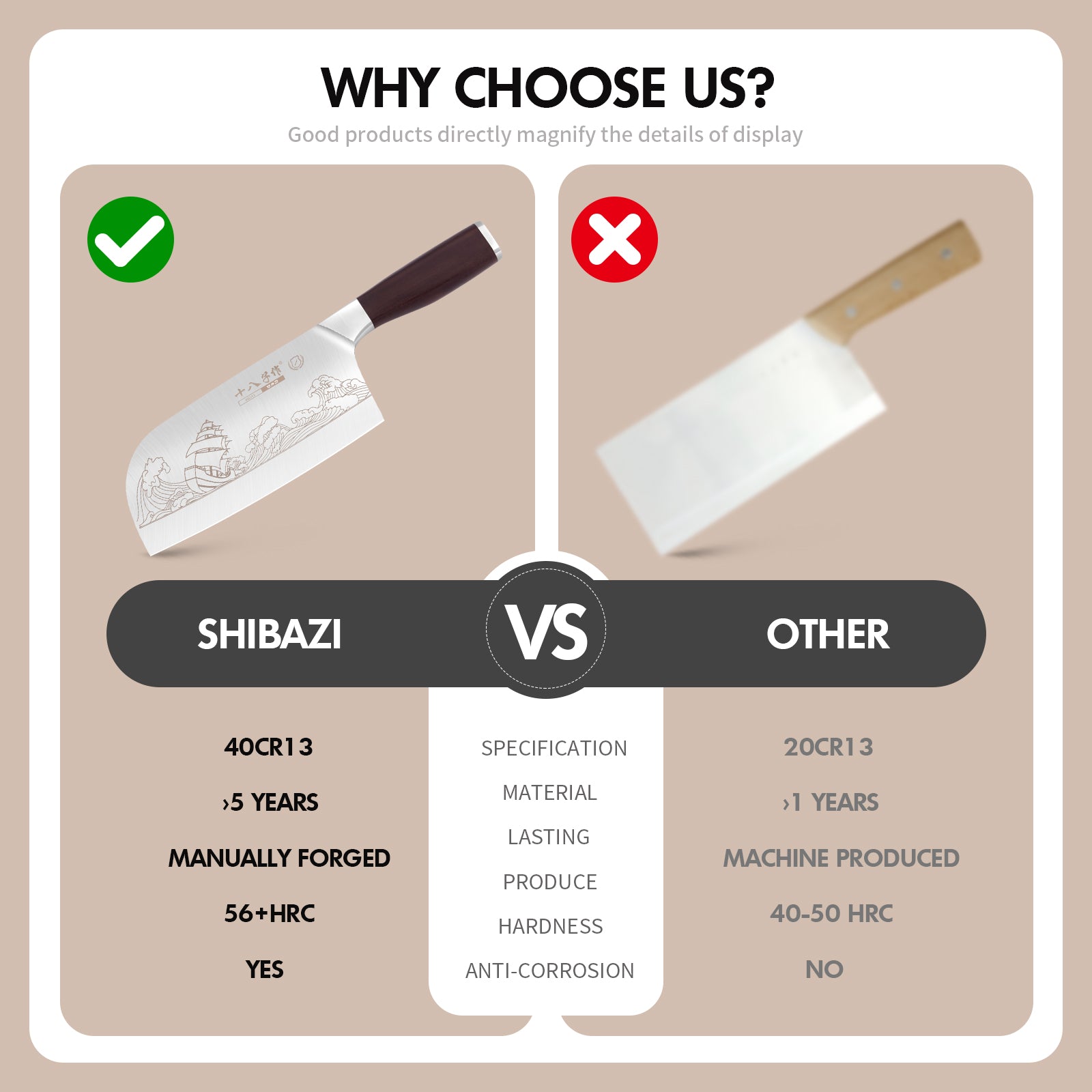 - Professional Knife Set - This kitchen knife set includes 2 razor-sharp knives: a cleaver knife and a santoku knife.Whether you're slicing meat,vegetables,dicing herbs,or prepping fruits, each kitchen knife of this set is designed to handle a variety of tasks effortlessly. Perfect for both professional chefs and home cooking enthusiasts.