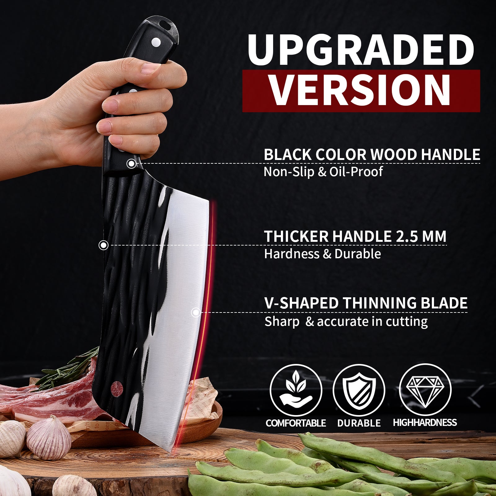 SHI BA ZI ZUO Meat Knife Cleaver Knife Forged Butcher Knife Kitchen Knife for Meat Cutting with Anti-Slip Wooden Handle
