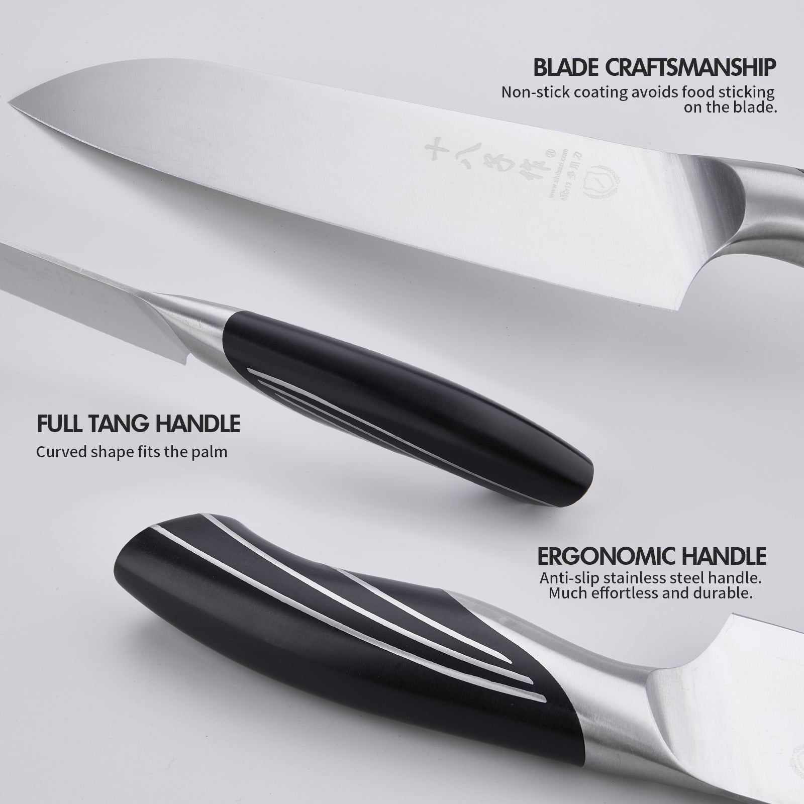 - Premium Stainless steel - 3-layer high quality clad stainless steel. High carbon core steel performs excellent hardness, durability and sharpness maintaining. Outside layers of low carbon steel does well in toughness, corrosion resistance and plasticity. The combination of two steels makes the knife perfectly work.