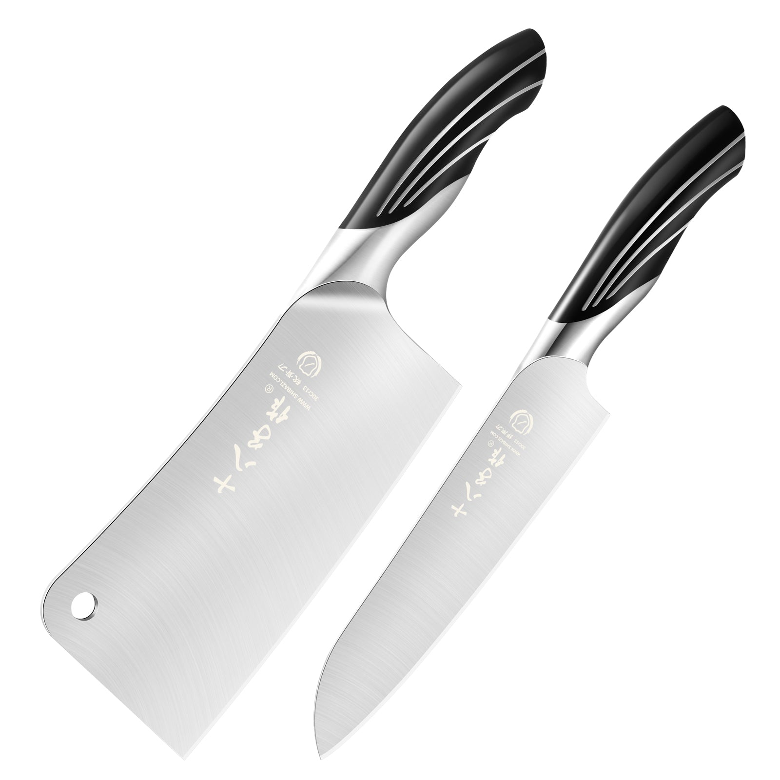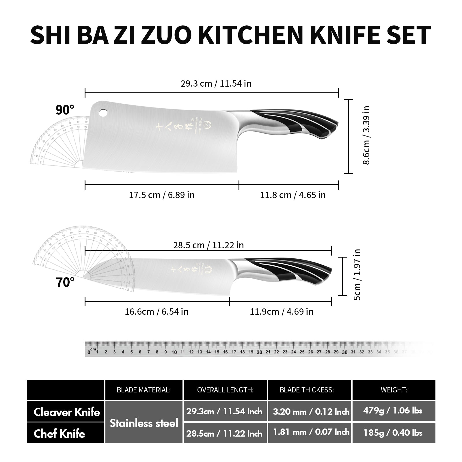 SHI BA ZI ZUO Professional Kitchen Knife Set,Butcher Knife and Chef Knife 2 Pieces Kitchen Knife Set for Cutting Bones,Vegetables and Meat