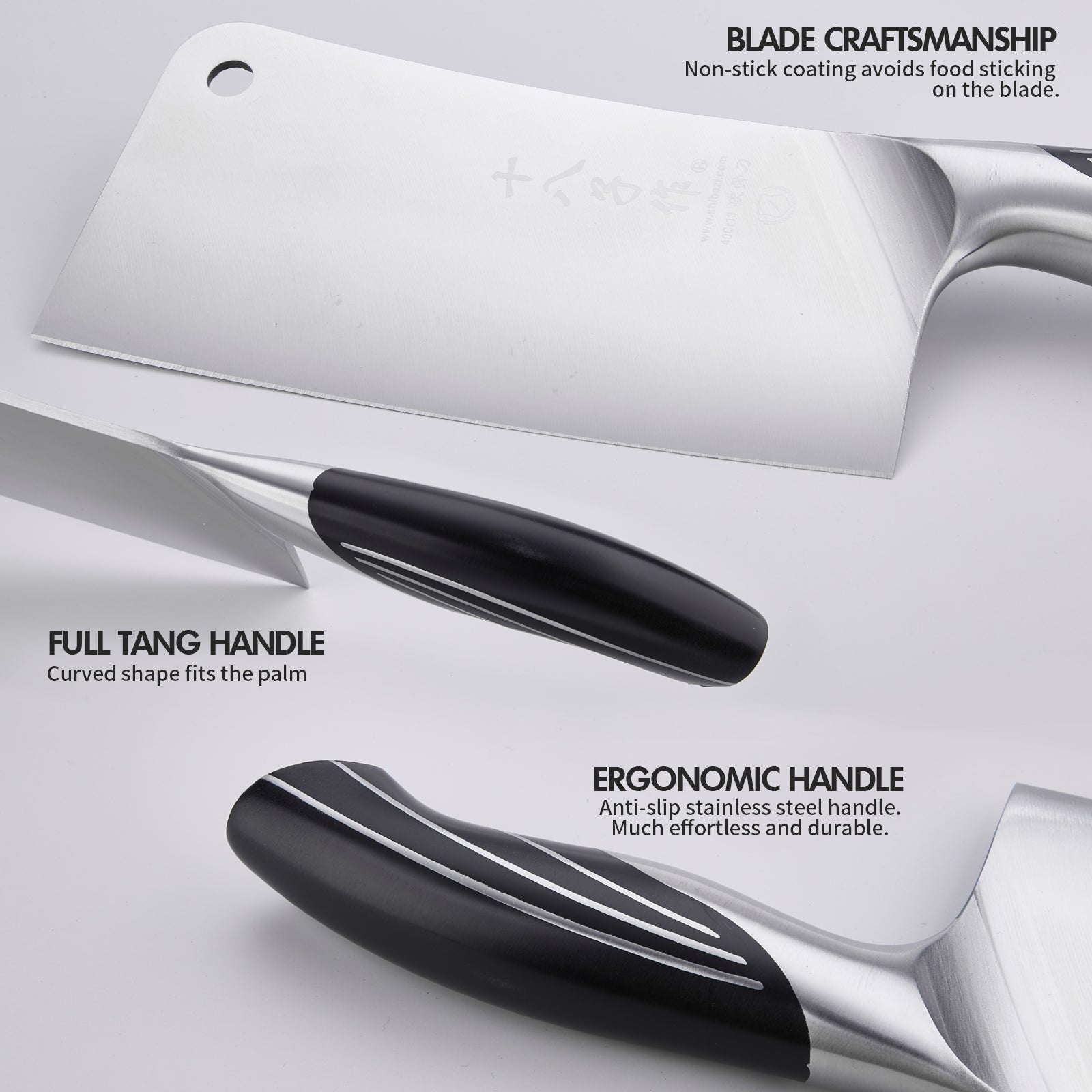 - 【Blade Craftsmanship】Vacuum heat treatment endows the steel with best mechanical property. Non-stick coating avoids food sticking on the blade. Wire-drawing integrated full tang blade is more stable and safer.