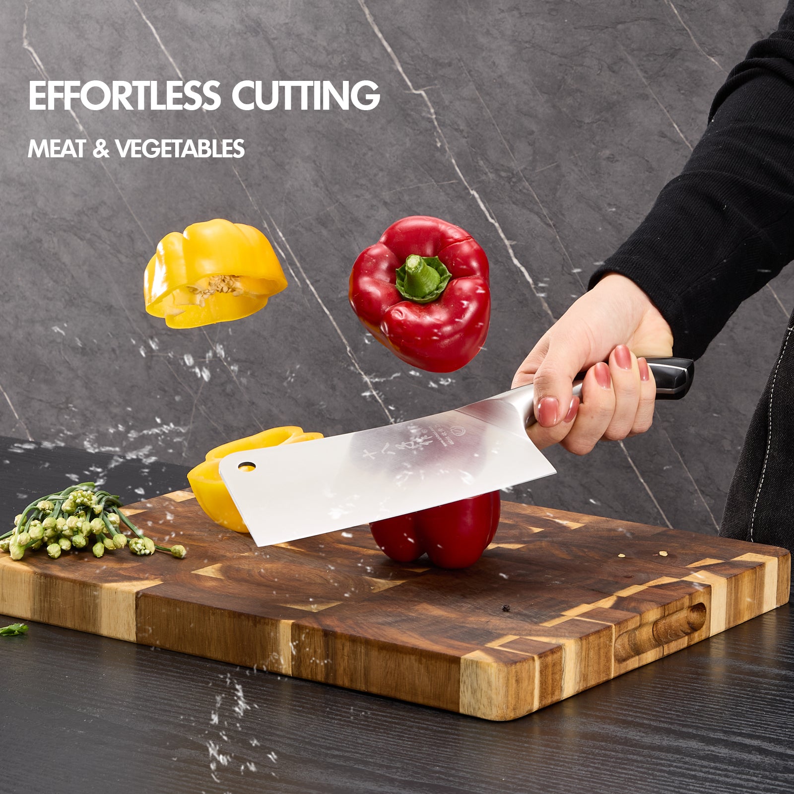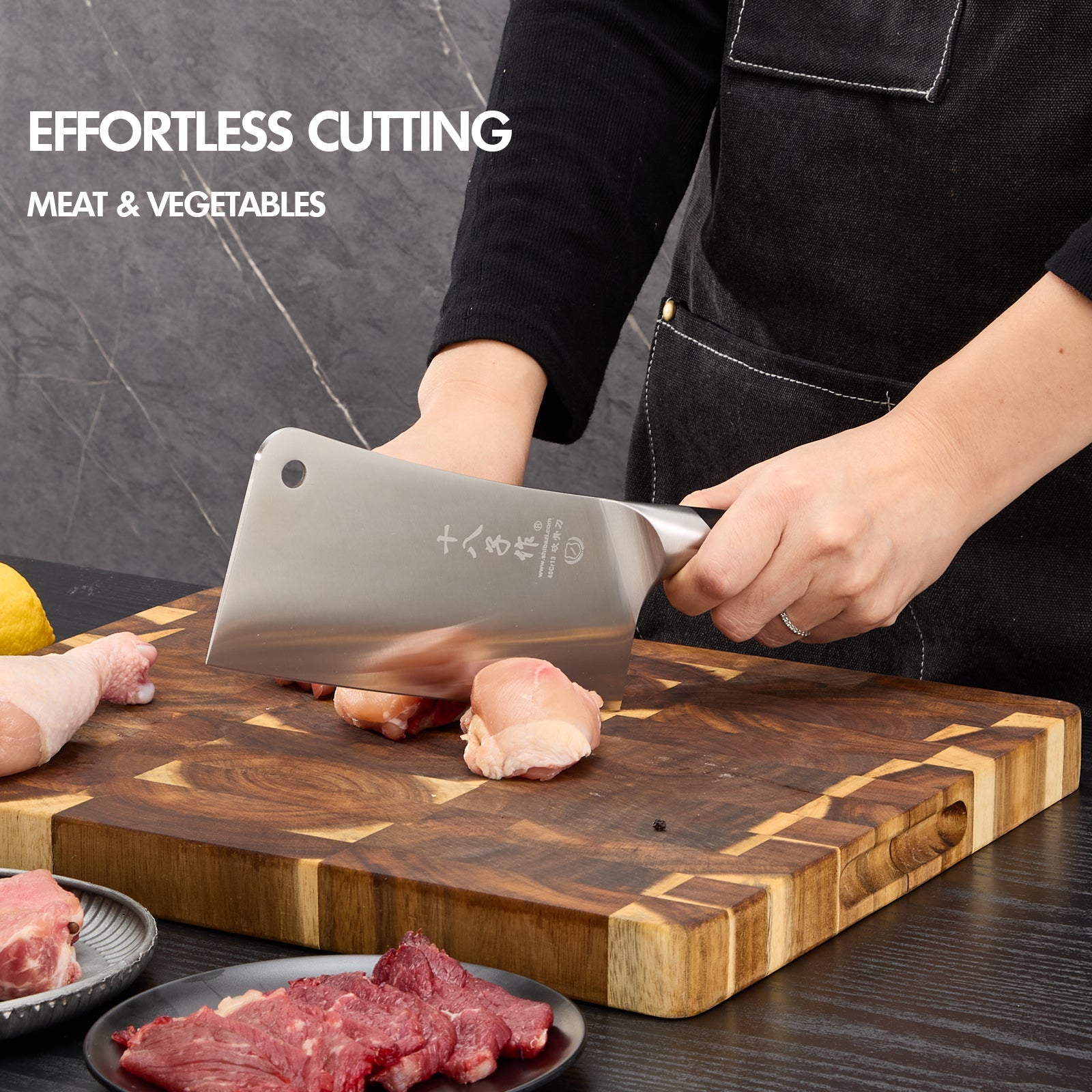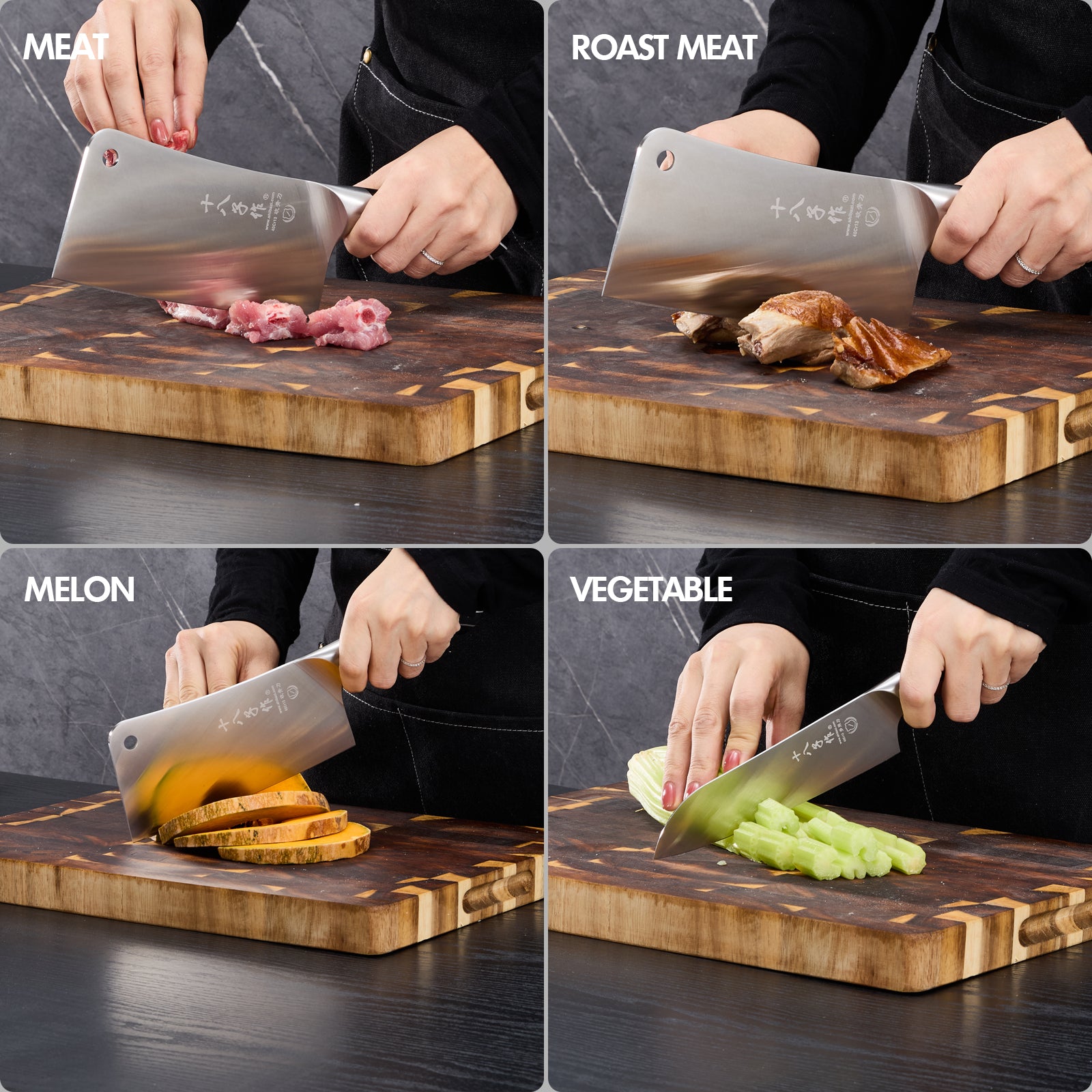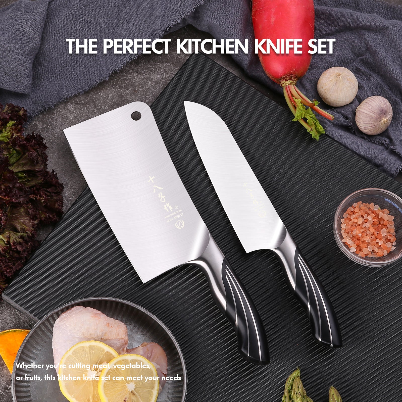 - 【Multifunctional knife set】This kitchen knife set includes 2 razor-sharp knives: a butcher knife and a chef knife.Whether you're slicing meat,vegetables,dicing herbs,or prepping fruits, each kitchen knife of this set is designed to handle a variety of tasks effortlessly. Perfect for both professional chefs and home cooking enthusiasts.
