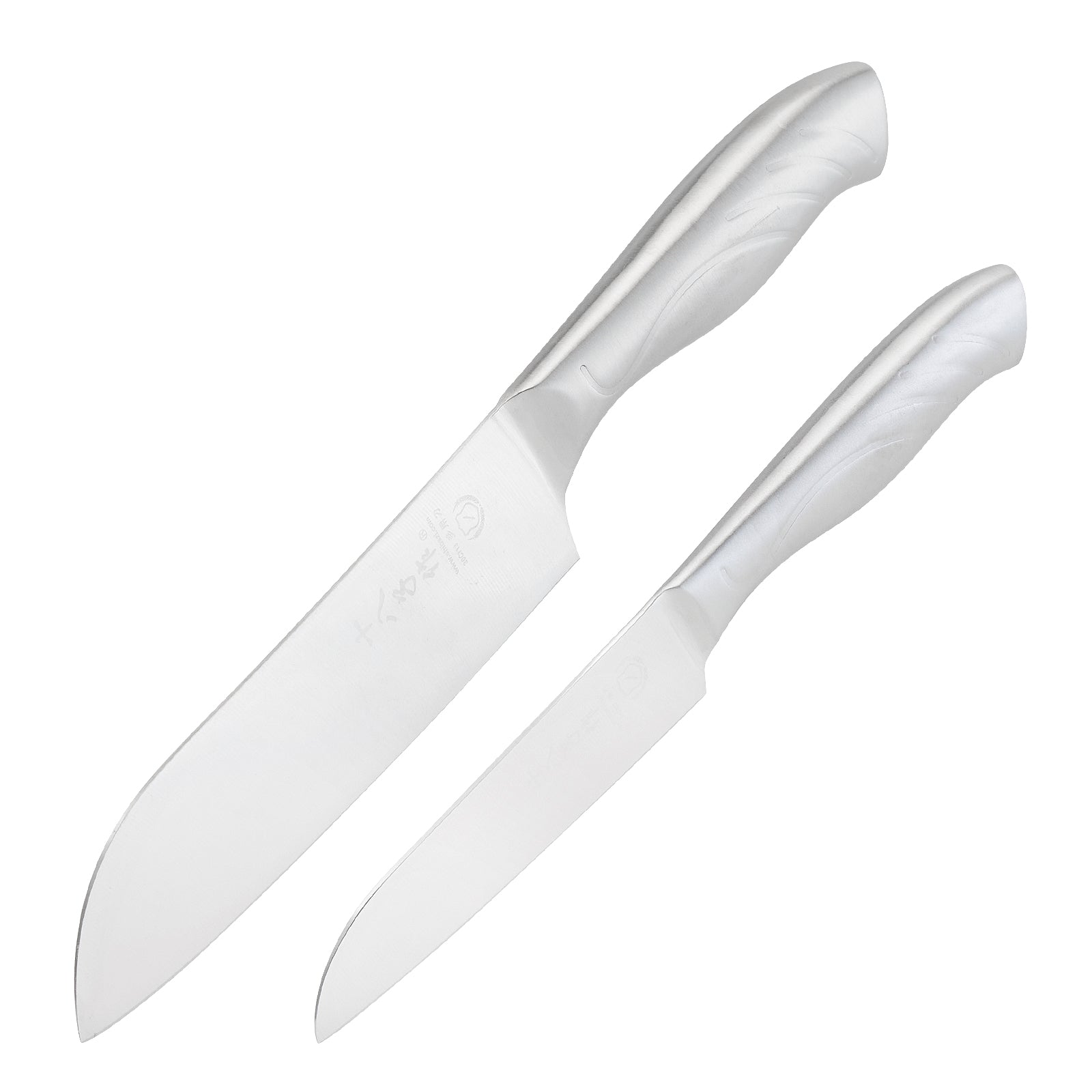 - 【Multifunctional knife set】This kitchen knife set includes 2 razor-sharp knives: a santoku knife and a fruit knife.Whether you're slicing meat,vegetables,dicing herbs,or prepping fruits, each kitchen knife of this set is designed to handle a variety of tasks effortlessly. Perfect for both professional chefs and home cooking enthusiasts.